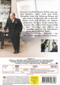 | "Lawrence Garfield hat nur drei Hobbies: Geld, Geld und Geld. Skrupellos kauft der Giftzwerg Firmen auf und ruiniert Existenzen. Als er aber die Finger nach dem Betrieb von Andrew Jorgenson ausstreckt, kommt alles anders: Sein Gegner heißt Kate, ist Anwältin und hat die hübschesten Beine der westlichen Welt..." |